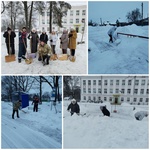 К девяти часам во дворе уже кипела работа. Все, вооружившись лопатами, скребли асфальт. Воздух был морозным и звонким, его разрывали звучные удары лопат о землю, скрип снега, смех и энергичные возгласы. От дыхания участников «битвы» стелился легкий пар.